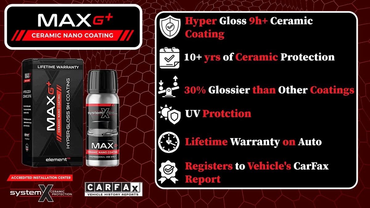The Max G+™ package is our highest gloss and most durable protection package. Max G+™ features a glossier, tougher shell up to four times thicker, 2x stronger, and 2x more durable than previous coatings.