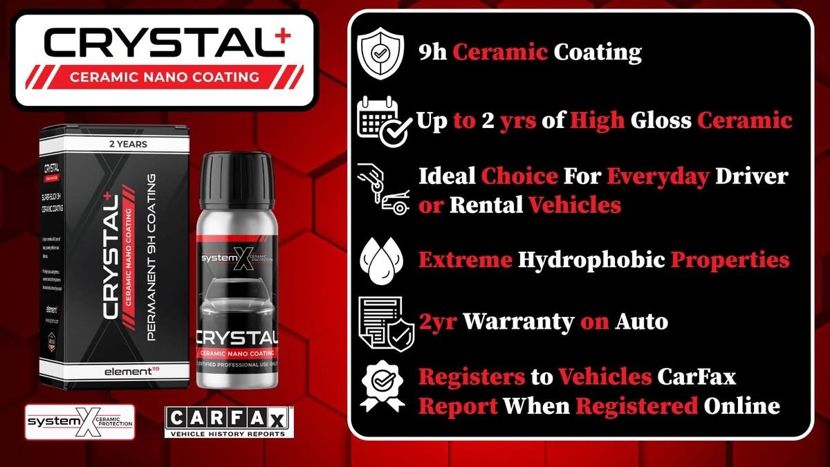 System X Crystal+™ is a high-gloss, super-slick ceramic coating with a 2-year warranty. It offers great gloss and semi-permanent self-cleaning properties.