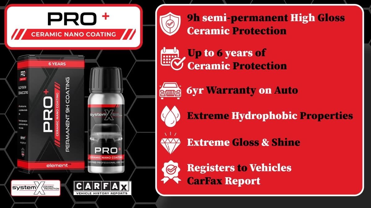 System X Pro+™ is an ultra-hydrophobic ceramic coating for automotive paint. Pro+™ is a semi-permanent 9H self-cleaning ceramic with a high gloss.