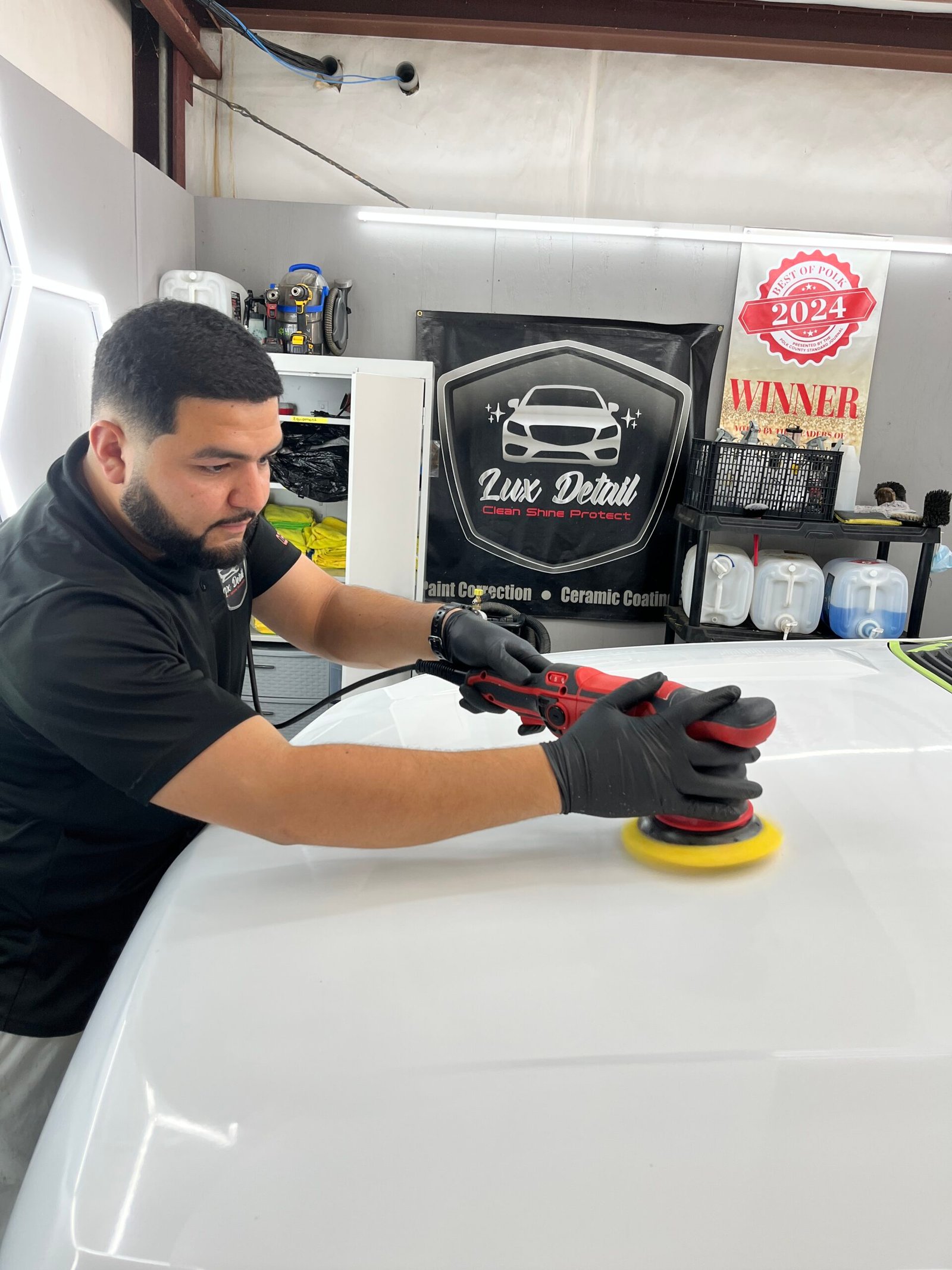 A premium paint enhancement treatment that cleans, polishes, and protects your vehicle’s finish in a single step. it removes light oxidation, minor swirls marks, and surface imperfections while restoring a deep glossy shine.this process leaves behind a protective layer of sealant up to 6 months. Perfect for vehicles that need a quick refresh without a full correction.